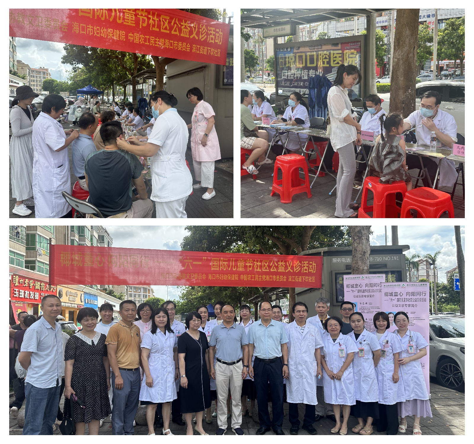 为关爱儿童健康成长、助力儿童友好城市建设。在“六一”国际儿童节即将到来之际,5月24日,海口市妇幼保健院、海口市政协教文卫委员会、农工党海口市委会、琼山区滨江街道下坎社区联合在绿色佳园东南门小广场开展“椰城童心、向阳同行”“六一”国际儿童节社区公益义诊活动。