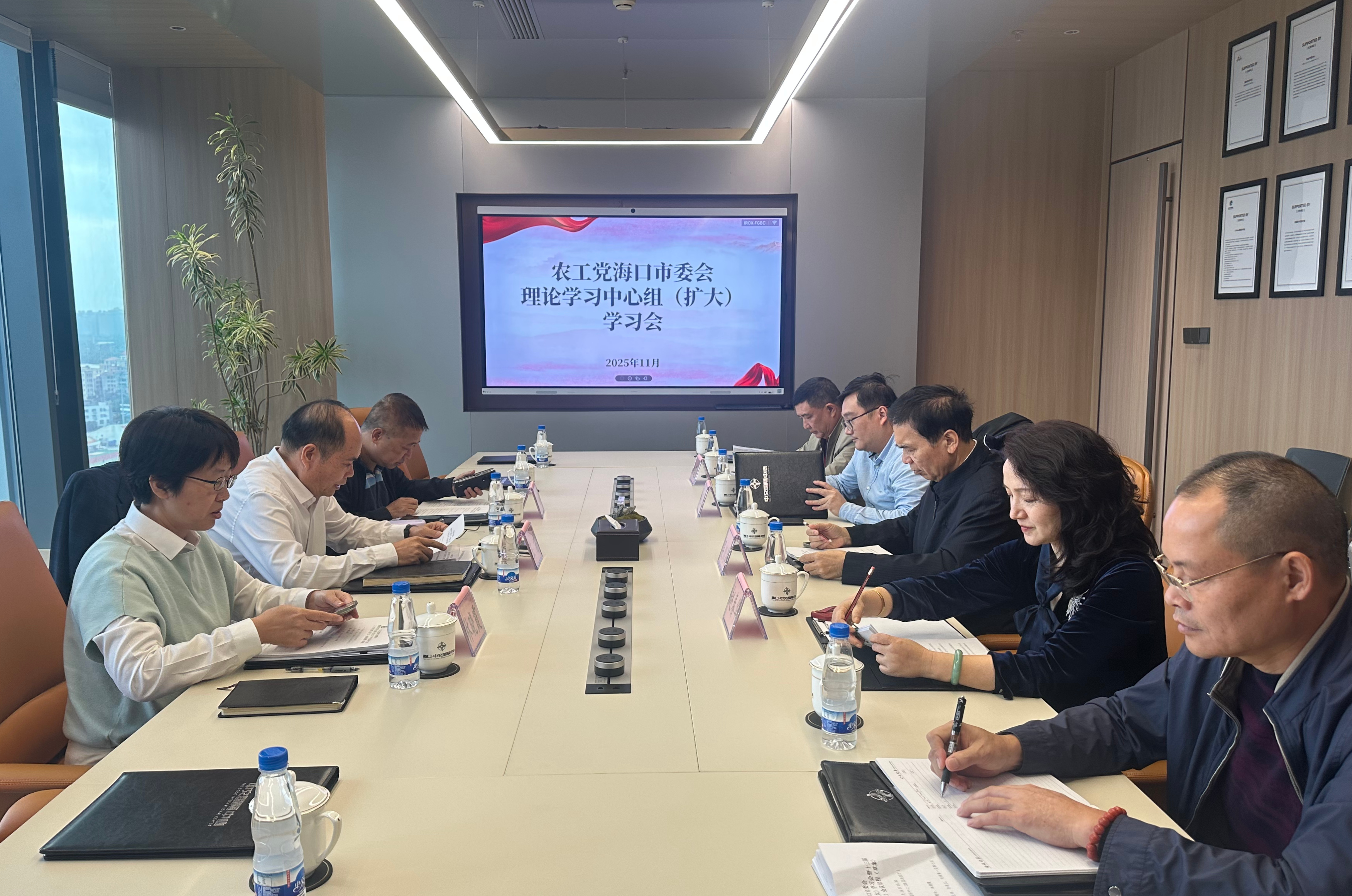 11月19日,农工党海口市委会召开理论学习中心组(扩大)学习会,传达学习中共二十届四中全会精神和习近平总书记在听取海南自由贸易港建设汇报时的重要讲话精神。市委会主委王宙主持会议,副主委吴涵、林晓霞及各总支负责人和机关干部参加学习。